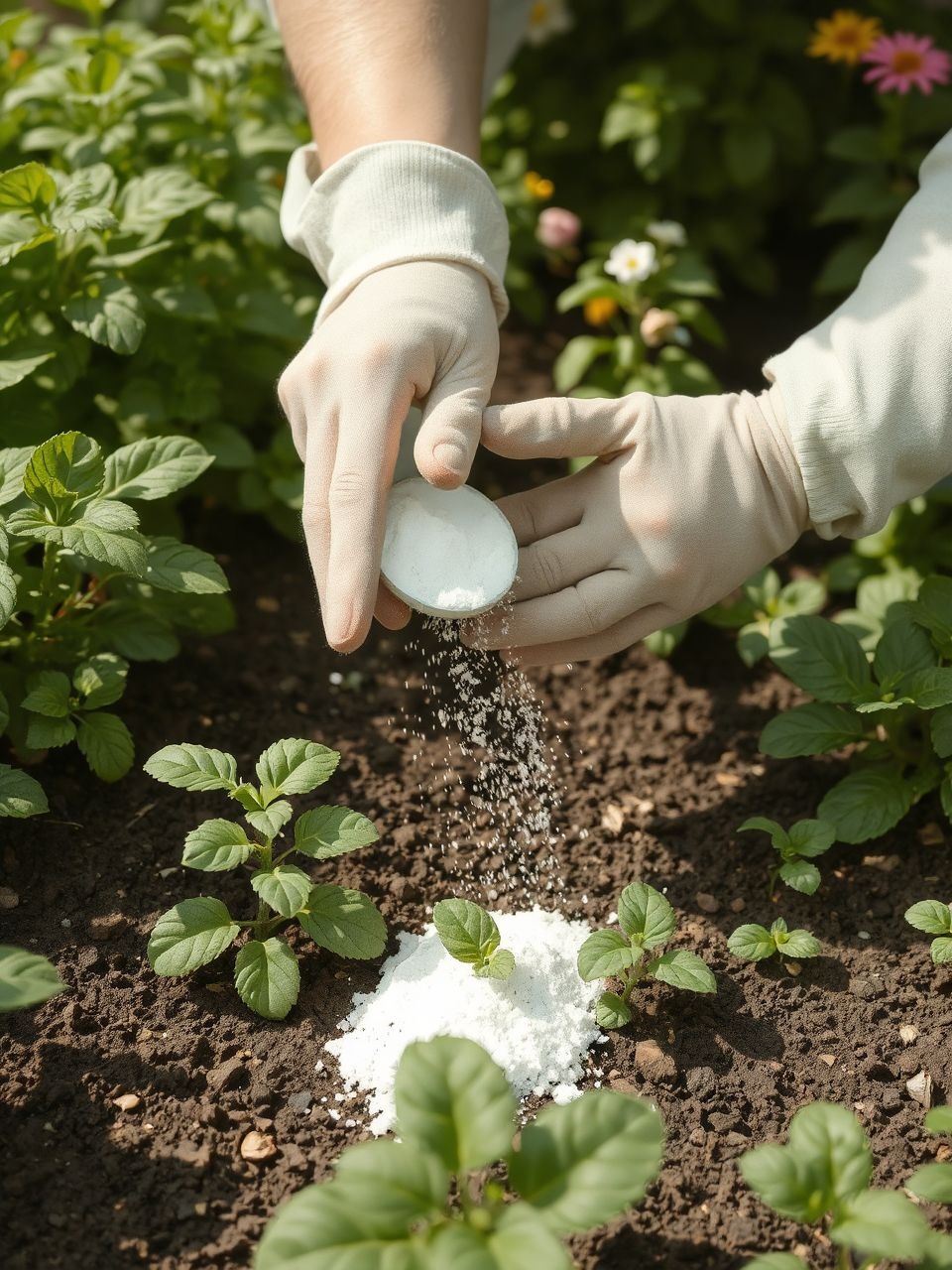 Egyenletes eloszlatás! | A port egyenletesen szórd el, majd dolgozd be a talajba. |