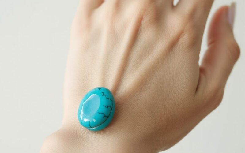 Az azonosítás során figyelj a mintázat természetességére, a pórusosságra, a szín egységességére és a kő „hőérzetére”. A túl egységes, nagyon élénk kék gyakran utal festésre, míg a valódi türkizben a mátrix mintázat organikusabb, „földiesebb”. Érdemes megbízható forrásból vásárolni, ahol egyértelműen feltüntetik, ha a kő festett.