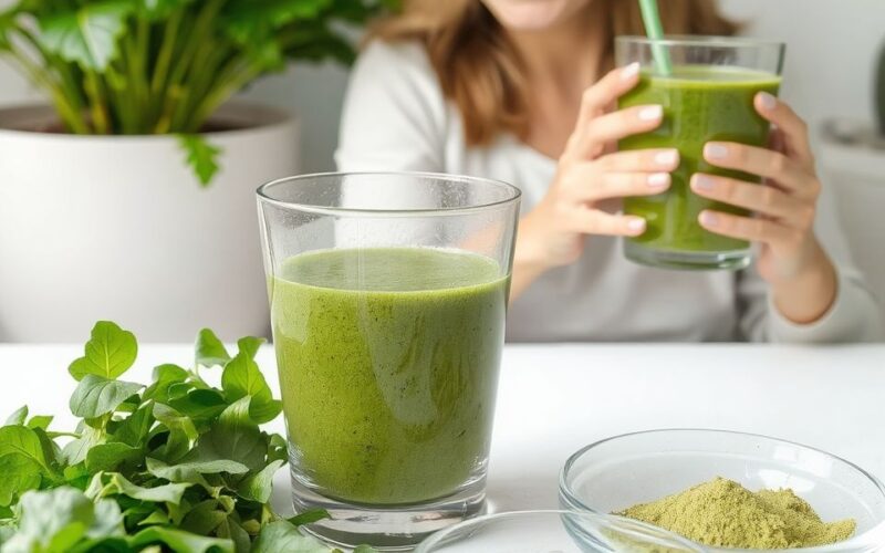 - Smoothie-k: A legnépszerűbb felhasználási mód. Keverjünk el 1-2 teáskanál spirulina vagy chlorella port kedvenc gyümölcs- vagy zöldségsmoothie-nkba. A banán, ananász vagy alma édes íze jól ellensúlyozza az alga jellegzetes ízét.