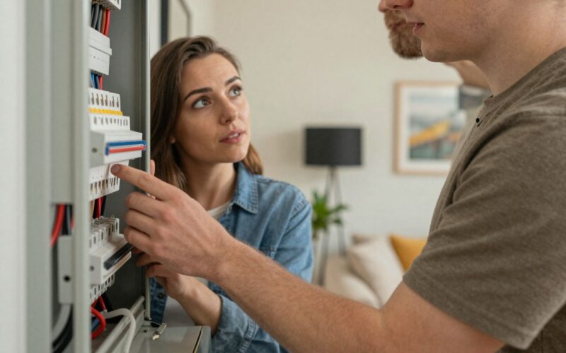 Szemrevételezéses ellenőrzés: Időnként érdemes ellenőrizni az elosztótáblát. Keresse a sérülés, elszíneződés, égésnyomok vagy laza csatlakozások jeleit. Ha bármilyen rendellenességet észlel, azonnal hívjon szakembert.