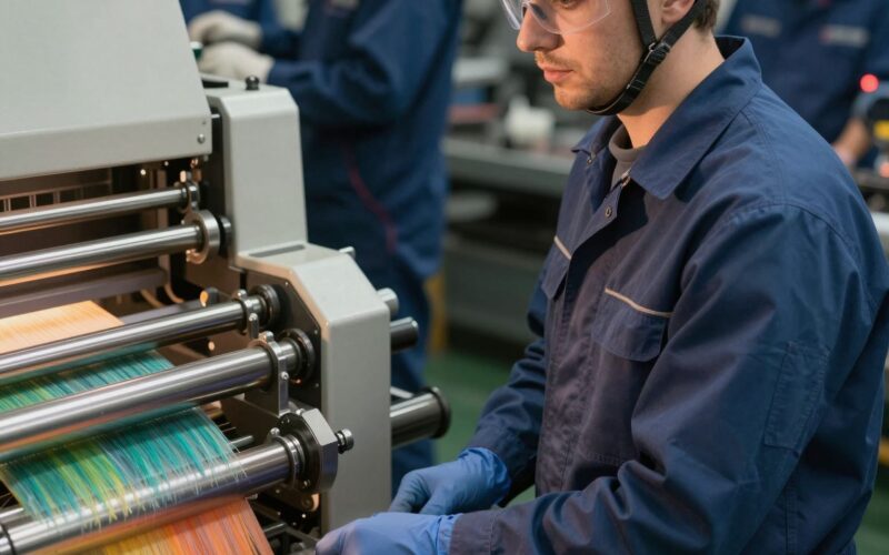 7. Vágás és tekercselés/gyűjtés: A kész terméket a kívánt hosszúságra vágják, vagy tekercselik, ha az egy folyamatos szalag, fólia vagy szál. Az utólagos feldolgozás, mint például a felületkezelés vagy nyomtatás, gyakran közvetlenül az extrudálási vonalon történik.