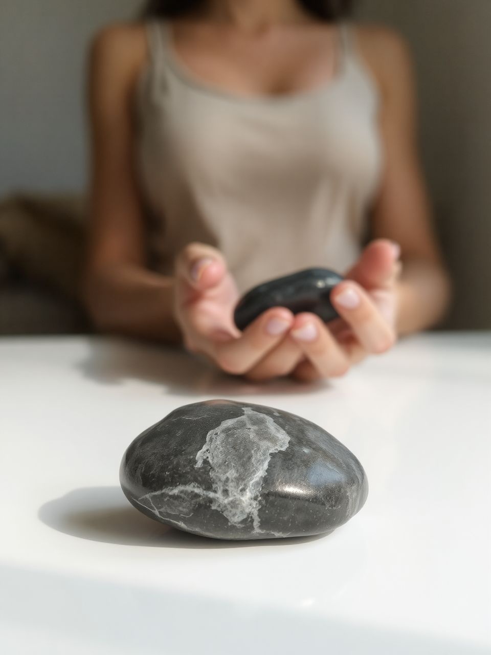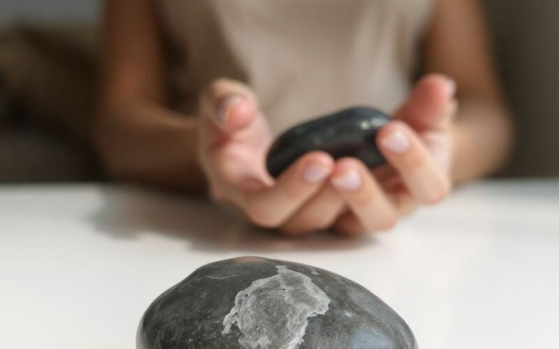 - Testre helyezés: Fájdalom vagy energetikai blokk esetén a követ közvetlenül a problémás területre helyezhetjük, hogy enyhítse a kellemetlenségeket és feloldja a torlódásokat.