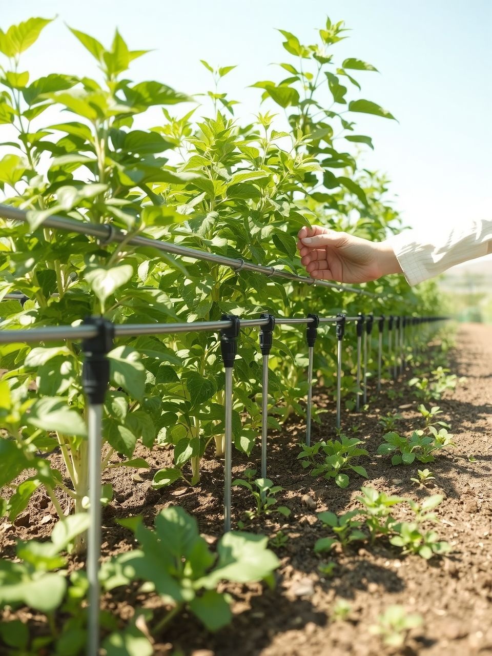 - Elhelyezés: A csepegtető csöveket közvetlenül a növények tövéhez vagy a sorok közé kell fektetni, a talajfelszínre vagy mulcs alá.