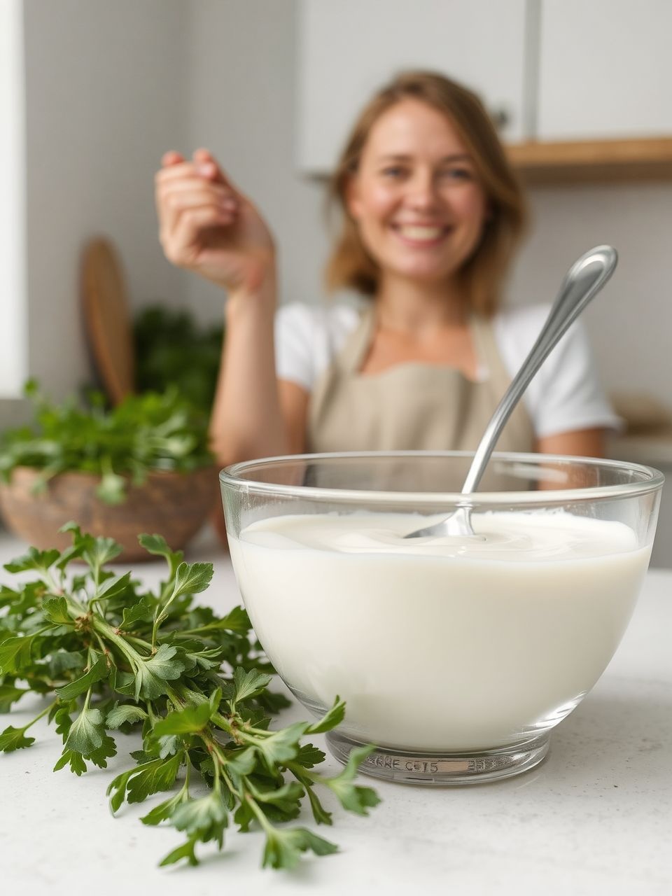 • Használja salátaöntetek alapjaként: keverje össze olívaolajjal, citromlével, fokhagymával, kaporral vagy petrezselyemmel.