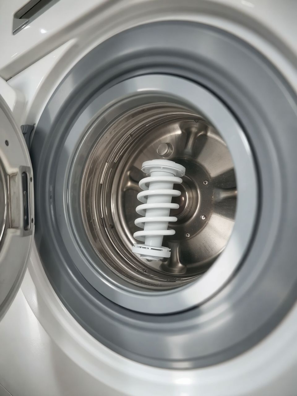 2. A “push test” (nyomáspróba): Ez egy klasszikus módszer. Üresítsd ki a mosógépet, és nyisd ki az ajtaját. Nyomd le határozottan a dobot a tetejénél fogva, majd engedd el. Egy jól működő lengéscsillapítóval felszerelt dobnak azonnal vissza kell térnie eredeti pozíciójába, és csak egyszer szabad megmozdulnia (egy fel-le mozdulat). Ha a dob többször is “rugózik” fel-le, mint egy régi autó, vagy lassan, nehezen áll vissza, az a lengéscsillapítók gyengeségére utal.